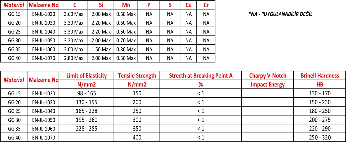Not: Yukarıda kimyasal birleşimi belirtilen tüm malzeme testleri 30 mm çapında hazırlanan numune ile gerçekleştirilmiştir. .
